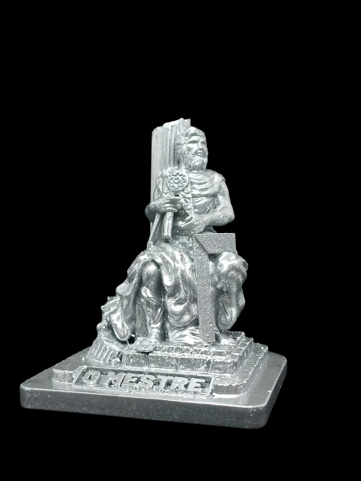 Estatua de mestre, tamanho pequeno, na cor prata.