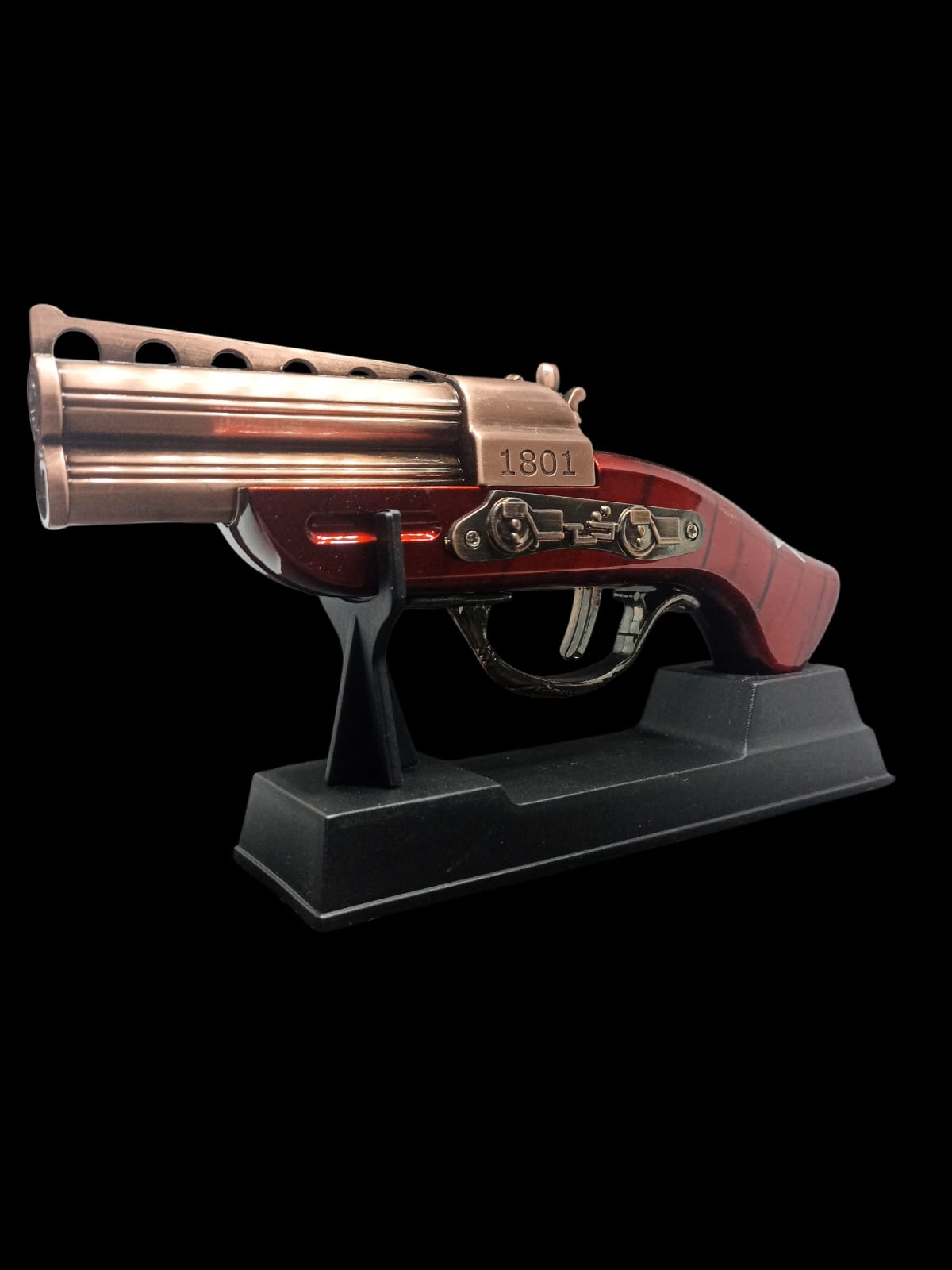 Isqueiro/maçarico recarregável - modelo garrucha 1801, acompanha suporte.
